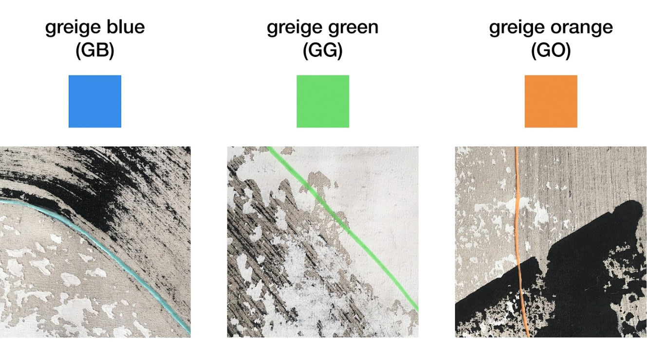 Our Greige fabric is hand-painted with black and white screen printing ink as well as glow in the dark / UV reactive detail lines in three colors: